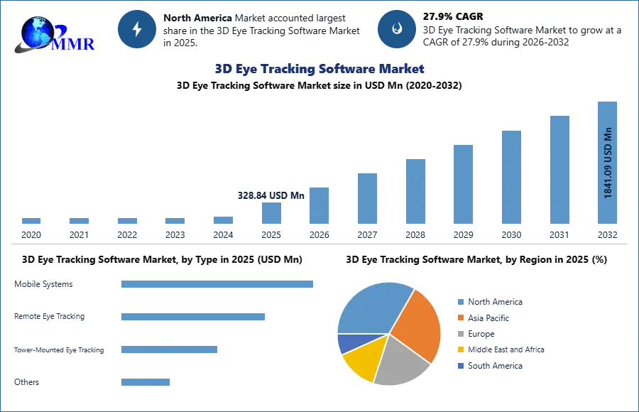 3D Eye Tracking Software Market size was valued at USD 328.84 Mn in 2025 and is expected to reach USD 1841.09 Mn by 2032, at a CAGR of 27.9 % from 2026 to 2032