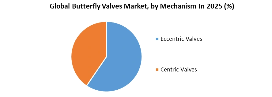 Based on Mechanism, butterfly valves Market is segmented into eccentric valves and centric valves. Eccentric Butterfly Valves have the axis of the shaft behind the centreline of the disc to seat seal, and the shaft is also eccentric, creating a cam effect. The result is that the disc creates a flat seal against the seat face, and the valve is unidirectional as the disc cannot rotate through the seat. The design eccentric butterfly valves are helps to minimizes wear and tear on the sealing surfaces, making them suitable for high-pressure applications and applications involving abrasive fluids. Concentric construction butterfly valve has the stem that drives the disc fixed along the same centreline as the disc that rotates 90 degrees to control flow. A significant benefit of concentric butterfly valves is that the flowing media is not ever in contact with the valve body or stem, it only wets the liner and disc. Centric Butterfly Valves held the dominant position in the butterfly valves market. They are suitable for various applications with moderate pressure and non-abrasive fluids. The simpler design mechanism is expected translate to lower manufacturing and purchase costs compared to eccentric valves. Concentric construction is commonly used in low to moderate pressure and temperature conditions where precise flow control is required.By Function, butterfly valves market is segmented into on/Off Valve and Control Valve. The on/Off Valves are designed to completely stop or allow flow through a pipeline. They are ideal for isolating sections of a system for maintenance or safety purposes. Their simple design features a 90-degree disc rotation that either fully blocks the passage or opens it completely. On/Off Butterfly Valves held the dominant position in the butterfly valves market in 2025 because of their quarter-turn operation allows for rapid opening and closing, making them efficient for on/off applications. On the other hand, the control valves regulate the flow rate of a fluid within a pipeline. They achieve this by adjusting the degree of opening of the disc, allowing for precise control over flow. Control valves are crucial for various applications where maintaining a specific flow rate is critical, such as in chemical processing or water treatment plants. As industries are increasingly relying on automation, the demand for butterfly valves is expected to increase with control systems for precise flow management application. Control valves play a key role in optimizing flow rates within systems, leading to reduced energy consumption. By end user industry, butterfly valves market is segmented into oil and gas industry, water and wastewater industry, power generation industry, chemical industry and others. The oil and gas industry deals with managing fluids, which are frequently pressurized and volatile. Butterfly valves are extensively used in the oil and gas sector because of their due to their ease of operation and reliable waterproofing capabilities. They are widely preferred in various stages like extraction, processing, transport, and storage. Oil and gas sector held the dominant share in the market with a share of more than 30% share in the global butterfly valves market.