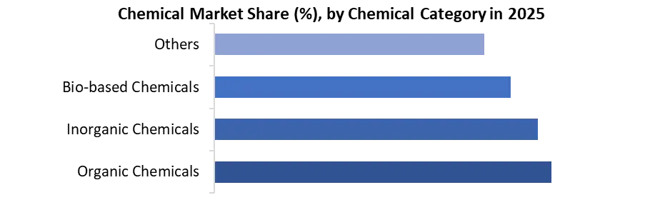 By Chemical Category, the market is segmented into Organic Chemicals, Inorganic Chemicals, Bio-based Chemicals, and Others. Organic chemicals dominate the chemical category in 2025, forming the backbone of modern chemical manufacturing due to their carbon-based structures and versatility across industrial applications. These chemicals underpin petrochemicals, polymers, solvents, surfactants, agrochemical intermediates, and specialty formulations.