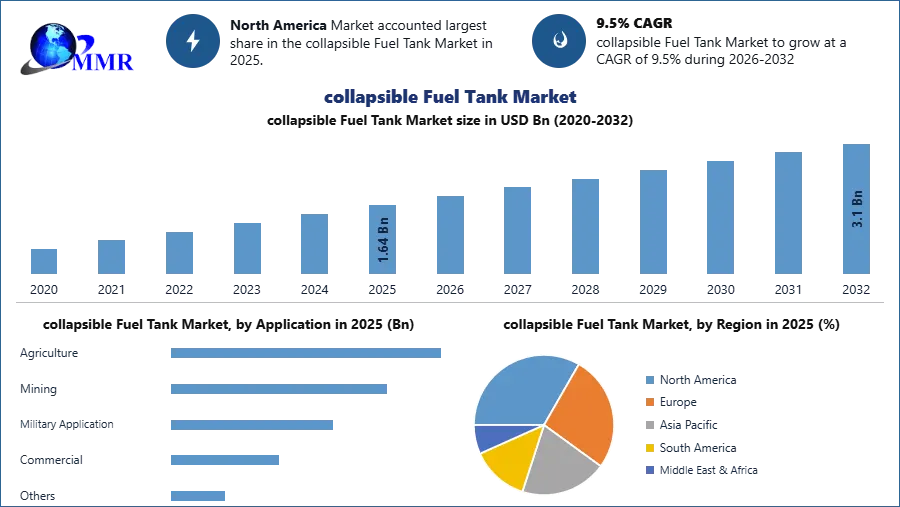 Collapsible Fuel Tank Market size was valued at USD 1.64 Bn in 2025 and is expected to reach USD 3.1 Bn by 2032, at a CAGR of 9.5%.