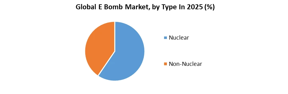 As high-power microwaves grow in the global market for E bombs, the use of these bombs is increasing in the military sector as they can be used to target mobile targets, mobile radars, naval vessels equipped with communication systems, air defense systems, and ill-shielded communications or electronic systems at military bases. Smart bombs or GPS-guided bombs are precision-guided weapons that are equipped with control systems, electronic sensors, and adjustable flight fins to provide better guidance. Currently, GPS-guided E bombs are in high demand since they precede conventional munitions for strategic air attacks. Generally, our hypothetical E bomb is a highly useful weapon that plays a critical role in many military conflicts. Meanwhile, the increasing use of nuclear weapons is also driving the growth of the E bomb market. With the intense electric and magnetic fields generated by such bombs, electrical/electronic systems tend to be damaged, including current and voltage surges that can burn out their sensitive components. Additionally, As a result of the explosion, an electromagnetic field is created, one that can short-circuit a wide range of electronic equipment such as computers, satellites, radios, radar receivers, and even traffic lights. These things may restrain the development of E bomb sales. Advances in military technology, improved range, and the capability of creating effects on strategic, operational, and tactical levels of warfare are some of the factors driving the global e-bomb market growth. Mobile E-bombs, which deliver their power into the enemy's system at the speed of light, might also increase the capability of the military against many fast-moving and agile targets. With its greater coverage and accuracy, the E bomb is more effective at protecting against hostile attacks, which increases its demand. The E bomb also has a significant effect on both air-to-air combats as well as air-to-ground combat, which is a great opportunity for the manufacturers and for key players as E bomb demand is increasing. The failure of semiconductor devices during an E bomb could affect industrial processes, railway networks, telephone and power systems, and water treatment facilities. Semiconductor devices can fail due to the local heating that occurs. Electronic equipment can be extremely at risk, and receivers of all kinds are particularly affected by E bombs. Radar and electronic warfare equipment, satellites, microwaves, UHF, VHF, HF, and low-band communications equipment, as well as cars equipped with ignition chips, can be impacted by the E bomb effect. These are some challenges by which market growth may get slow during the forecast period.E Bomb Market Segment Analysis: