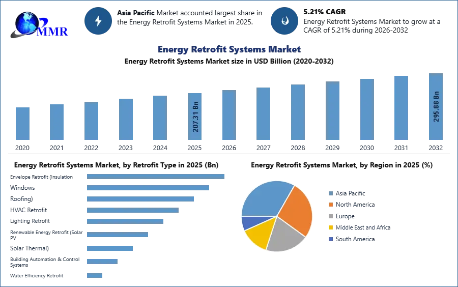 Energy Retrofits Systems Market size is expected to reach USD 295.88 Bn by 2032, at a CAGR of 5.21% during the forecast period.
