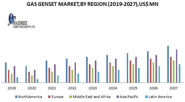 On the basis of region Gas Genset Market is divided into North America, Europe, Asia Pacific, Middle East and Africa, and Latin America. North America is estimated to be the dominant region in the gas genset market due to quickly developing zones for the gas gensets market. The market is influenced by the U.S because of the enormous widening in the manufacturing of natural gas and shale gas. The country has perceived an expensive decrease in natural gas costs. A strong chance for development exists in the forthcoming years in the emerging economies of Asia Pacific due to the quick globalization in nations like China, Japan, and India. The poor administration and control of power grids, directing to a stand up in power discontinuity, in emerging economies is estimated to be an important element in uplifting the demand for gas-powered creators in the Asia Pacific. Europe also reports for the highest share of the gas gensets market. Advantages of Genset • Fuel Efficiency • Scalable design • Automatic Or manual paralleling • Local or remote operations • Automatic loading Control • Dependability • Low emissionsGas Genset Market Key Developments