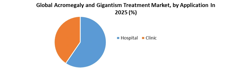 Based on Type, the Acromegaly and Gigantism Treatment Market is sub-segmented into somatostatin analogs and dopamine agonists. The somatostatin analogues segment dominates the global market and it held a share of 55 % in 2025. These are the drugs used to stop the production of hormones in the human body. Some of the somatostatin analogues drugs included in the acromegaly and gigantism treatment are octreotide and lanreotide. In May 2025, CHIASMA, a US biopharmaceutical company made an agreement with Swiss drug contractor LONZA for the supply of MYCAPSSA a first oral somatostatin analogue. Under this collaboration, both are investing in specialized equipment like large-scale LFHC coating equipment and in-house printing capabilities for supporting manufacturing activities performed by Lonza for MYCAPSSA manufacturing. Based on the Application, the Acromegaly and Gigantism Treatment Market is sub-segmented into hospitals and clinics. The hospital's segment dominates the global market and was valued at USD 2.1 Bn. in 2025. The increasing number of multi-specialty hospitals and growing government spending on healthcare infrastructure are driving the market growth. More people are attracted to hospitals due to their well-equipped structure and high utilization of technology in treating acromegaly and gigantisms like magnetic resonance imaging (MRI) for viewing pituitary tumors, Computed tomography scan, and radiation therapy, etc. The slowing the demand for the clinic is due to additional operating costs, staff dissatisfaction with staggered schedules does not support TCON intervention to manage demand, etc.![]()