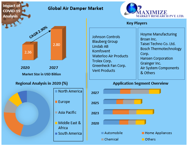 Air Damper Market is expected to reach US $ 2.96 billion by 2029, thanks to growth in the automobile segment. The report analyzes Air Damper market dynamics by region, product, and application.Air Damper Market Overview: