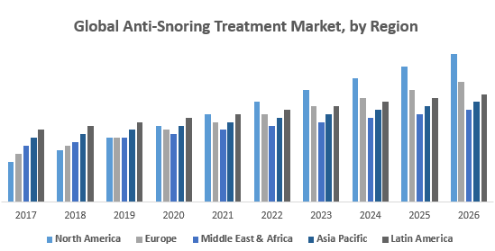 The hospitals & clinics are the largest application segments owing to the sleep clinics that recommend anti-snoring oral appliances to their patients and shows a positive success rate. But, the success rate of anti-snoring oral appliances may vary between individuals. However, the demand for home healthcare is increasing during the forecast period owing to the growth of technologically advanced & portable products. The rising alertness on the ill effects of snoring, the occurrence of a large number of market players, and the existence of a large pool of untreated snoring population in North America are expected to lead the market followed by Europe, Asia Pacific during the forecast period. The Asia Pacific is projected to lead the market during the forecast period in view of obesity & breathing disorders. The report covers a comprehensive study of major market drivers, restraints, opportunities, challenges, PESTEL, Porters, SWOT, and technological forecasting in the market.Anti-Snoring Treatment Market, Key Highlights: