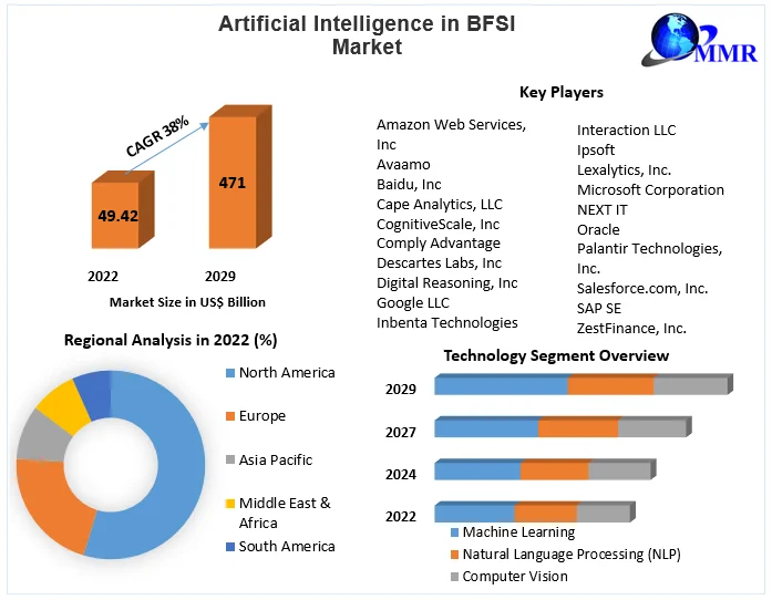 Artificial Intelligence in BFSI Market is expected to reach US $ 471.07 Bn by 2029, at a CAGR of 38% during the forecast period.Artificial Intelligence (AI) in BFSI Market Dynamics: