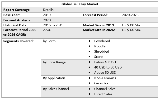 Increasing use of ball clays in ceramics for the pre-firing operation of the ceramic content owing to high workability and strength of ball clays and increasing demand for ball clays among potters and ceramic manufacturers across the globe are the factors considered to drive the growth of the ball clay market. Moreover, owing to the sedimentary origin of the ball clays, they are available in a wide range of colors and have gained popularity in Europe since the 17th century. Furthermore, the increasing construction sector across the globe and the use of ceramics for interior aesthetics and higher strength are the factors considered to drive the growth of the ball clay market. In addition, the proven essential ability of the ball clays for pottery and china clay making is boosting the growth of the market during the forecast period. Drying properties of ceramic material are key factor manufacturers are really worried about and hence, demand for ball clay market is bolstering in the industry as ball clays are very good for maintaining the water content trapped in the raw material form. Increasing urbanization and increasing development by manufacturers to provide optimizable designs for clay making is the factors expected to create opportunities for prominent players in the market. Moreover, increasing sanitation wears demand in the construction industry is further bolstering the demand for key players in the market. Negative environmental impact owing to the mining of ball clay and high price range of the product owing to the rarity of the material are the factors considered to restrain the market growth. Henceforth, sustainable techniques of manufacturing is the key development issue considered to challenge the market growth.Ball Clay Market Segment Analysis: