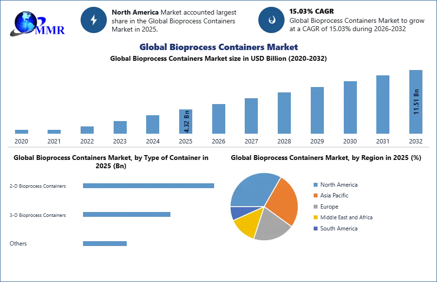 5.1. North America Global Bioprocess Containers Market Size and Forecast, by Type of Container (2025-2032)