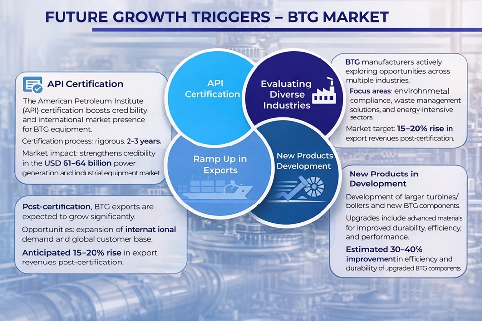 The global Boiler, Turbine, & Generator (BTG) market was valued at USD 65.34 billion in 2025, growing at a CAGR of 5.87% from 2020–2025, impacted by fuel price volatility, COVID-related disruptions, and slower renewable adoption. Market momentum is expected to rebound in 2025–2026, driven by industrial expansion, modernization of aging power plants, and strategic capacity additions in emerging economies.To know about the Research Methodology :- Request Free Sample Report