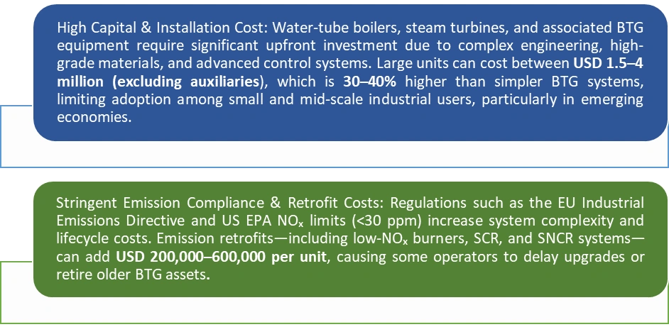 Clean Energy Drives Global Boiler, Turbine, & Generator (BTG) Market Growth The global Boiler, Turbine & Generator (BTG) market is growing as clean energy policies and efficiency-focused power generation reshape the sector. In 2025, China and India together generated over 60% of their electricity from coal and gas, sustaining demand for advanced BTG systems. Adoption of combined-cycle and CHP technologies has improved plant efficiency by 15–20%, while emission-control solutions such as CCS support decarbonization goals. By 2032, infrastructure upgrades in the US and Europe and rising gas-based power capacity globally are expected to drive stable, long-term BTG market growth.Structural and Regulatory Challenges in the Boiler, Turbine, & Generator (BTG) market