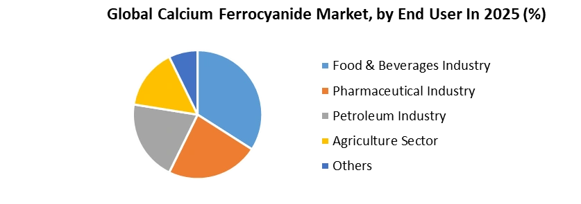 The Global Calcium Ferrocyanide Market is segmented on the basis of By Product Type, this segment is bifurcated based on the use of Calcium Ferrocyanide. Sub-segments are Food Grade where Calcium Ferrocyanide is used in food products and Industrial Grade where Calcium Ferrocyanide is used in different Industries. It is observed that Food grade Calcium Ferrocyanide leads the market consumption, however, Industrial Grade Calcium Ferrocyanide accounts for more than 50% of the total revenue in the Calcium Ferrocyanide Market. By End User, It is observed that Food and Beverages Industry is the major consumer of Calcium Ferrocyanide Market. With Increased use in Agriculture Sector and Petroleum Industry, revenue has seen a 15% increment in the year 2017-18 as compared to previous years. With applications ranging from the Pharmaceutical Industry to different industries dealing in metals and alloys, Calcium Ferrocyanide Market is observing an increased consumption. Different industries use Calcium Ferrocyanide as per need.The above pie chart shows the consumption of Calcium Ferrocyanide by different industries present in the market. It is observed that the use of Calcium Ferrocyanide is diversified in different Industries that are related to metals, alloys, and metallurgy. Different industries dealing with Iron, Tin, and Molybdenum use Calcium Ferrocyanide on large scale. For different processes ranging from casting to coating, Calcium Ferrocyanide is used on large scale. Different other industries like industry related to photography, scrap, and purification of metals and alloys use Calcium Ferrocyanide on a large scale. The petroleum Industry comes in the second position. Here, Calcium Ferrocyanide is used to remove mercaptans, an unnecessary component from petroleum products. Ease in availability and affordable cost has resulted in cost reduction for the otherwise high cost-ridden petroleum industry. The Agriculture sector comes in the third position. Uses of Calcium Ferrocyanide to make nitrogen-based fertilizers that are economical by price and highly effective have increased its consumption by the Agriculture sector. Pharmaceutical Industry comes in the fourth position. The Anti-caking properties shown by Calcium Ferrocyanide are used here to manufacture capsules and syrup. The same properties are used by Food & Beverages Industry to manufacture Bakery, Confectionery, and beverages. This consumption on a big scale has brought the Food & Beverages Industry in the fifth position.