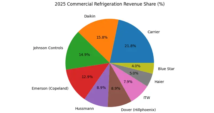 The revenue share graph shows that leading companies dominate the commercial refrigeration segment and actively invest in smart, energy-efficient technologies. As QSR expansion and urban demand increase, these firms leverage digital integration and replacement cycles to accelerate sustained, innovation-driven market growth.