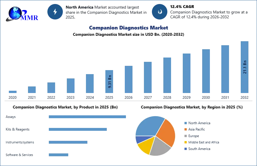 Companion Diagnostics Market size was valued at USD 9.31 Billion in 2025 and the total Companion Diagnostics Market revenue is expected to grow at a CAGR of 12.4% from 2026 to 2032, reaching nearly USD 21.1 Billion by 2032.