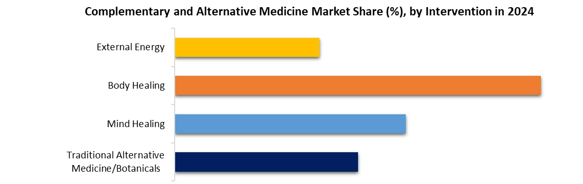 The increasing chronic diseases driving the Complementary and Alternative Medicine Market The increasing incidence of chronic conditions like cancer is expected to accelerate the growth of the complementary and alternative medicine sector. Global Complementary and Alternative Medicine plays an essential role in cancer treatment and effectively alleviates prevalent side effects like pain, nausea, and fatigue. The medical community is increasingly acknowledging Global Complementary and Alternative Medicine's effectiveness in treating and diagnosing various conditions. A surge in global disease rates, combined with an expanding elderly population, drives its Global Complementary and Alternative Medicine market growth significantly. The global geriatric population is expected to exceed 2 billion by 2032. Growing public interest is driving research efforts in the C.A.M. industry The high cost of contemporary pharmaceuticals, time constraints from both patients and healthcare providers, microbial resistance, and adverse effects of modern medicine, the public interest has regained in the Complementary and Alternative Medicine Market. Self-medication, traditional healing techniques, and indigenous systems of medicine, including Ayurveda, herbal preparations, Yunani, homeopathy, acupuncture, naturopathy, chiropractic manipulation, and other therapies are the factors growing the Complementary and Alternative Medicine Market. In October, Herb Pharm invested in Regenerative Organic Certification as a demonstration of the company's commitment to navigating challenges for enduring advantages in the business landscape. The shifting lifestyles of individuals, coupled with a growing elderly demographic, are also pivotal in driving the growth of the complementary and alternative medicine market. Increase in the number of research and development activities The increasing number of research and development department is concrete the way for enhanced growth in the complementary and alternative medicine market. Trend offers promising avenues for growth. Also, drug approvals and introductions present opportunities to accelerate market growth. Increasing number of collaborations The market has witnessed significant growth, driven by the introduction of new products in response to heightened demand and continuous innovation. For Instance, in , DaVita Medical Group signalled a move towards original therapies designed for children and supporting a broad range of healthcare professionals, like physicians, physical therapists, and chiropractors. In , approximately two-thirds of the population in both industrialized and developing nations had reported using some form of complementary or alternative treatment. Increased advanced technologies and the rise of new markets present promising avenues for the growth of the complementary and alternative medicine market during the forecast period.Complementary and Alternative Medicine Market Segment Analysis: