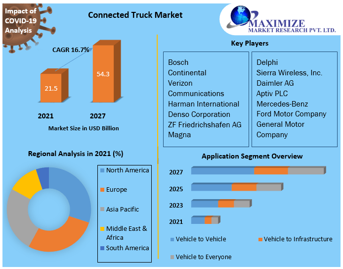 The lockdowns travel bans, and business shutdowns during COVID-19 have impacted economies and industries in various countries. The shutdown of various plants and factories has negatively impacted global supply chains as well as manufacturing, delivery schedules, and product sales. As a result of delays in product delivery and slumps in future sales, many companies have already announced their plans to collaborate and partner. Additionally, the global travel bans imposed by countries in Europe, Asia-Pacific, and North America are affecting business collaborations.Connected Truck Market Segment Analysis: