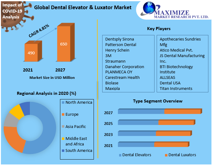 Many large-scale firms and industries suffered as a result of the Covid-19 impact, with the exception of healthcare and life support items. Millions of small and large businesses have been affected by the lockdown and physical distancing rules. Due to the lockdown and physical separation, the dental elevator and luxator market experienced a modest decline. The major businesses have taken steps to develop the distribution of dental luxator and elevator equipment over the world. Furthermore, individuals are becoming more conscious of the necessity for dental procedures, and pharmaceutical prices are rising. As a result, these factors are expected to boost the market value of dental elevators and luxators during the forecast period.Dental Elevator & Luxator Market Dynamics: