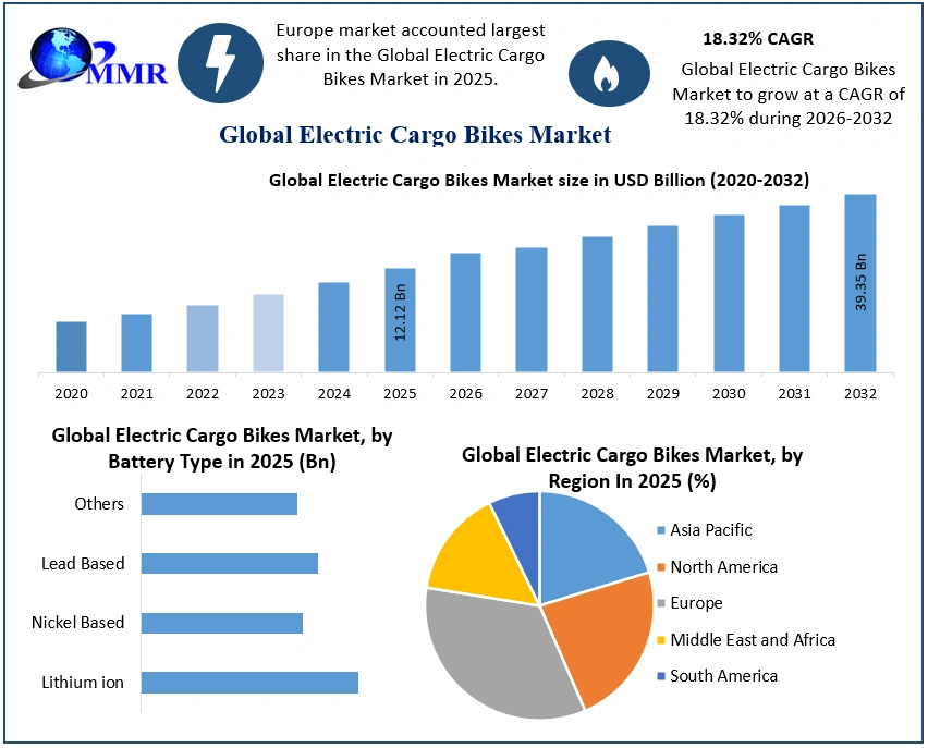 Electric Cargo Bikes Market Size by Product Type, Battery Type, End User, Region – Segment-Level Market Assessment, Growth Opportunity Analysis, Competitive Mapping & Forecast to 2032