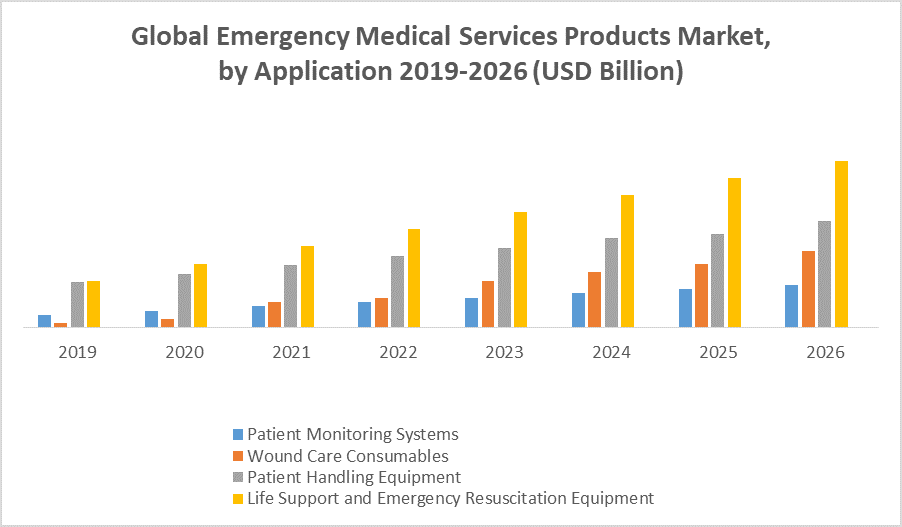 EMS products work as ‘support function’ and focus on ensuring safe and reliable transport. EMS products offer high-quality pre-hospital care by specialized professionals and are tightly integrated with other healthcare services. Emergency medical service products facilitate basic treatment of symptoms on many disorders and life threatening conditions. Technological advances and enhanced skill levels of emergency staff allow EMS products for highly specialized treatment to begin at the scene of an emergency and continue during transport. For example, Ambulance service is supplemented by a Mobile Critical Care Unit and a number of other emergency units, providing urgent care for infants, psychiatric patients and other groups who need highly specialized treatment. Also, Demographic changes and the increasing prevalence of lifestyle diseases and chronic conditions create opportunities for global market. Advances in medical care products and technology in recent decades have expanded the parameters of traditional domain of emergency medical service products. Developing EMS products to meet the range of needs posed by diverse circumstances including innovation of products according to public health planning. As a result, the patient monitoring system segment commended the largest market share of xx% by 2029.Emergency Medical Services Products Market Segment Analysis: