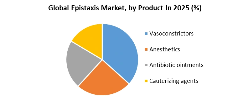 Acute haemorrhage from the nostril, nasal cavity, or nasopharynx is known as epistaxis. It's a common emergency department (ED) problem that causes patients and professionals a lot of anxiety. Vasoconstrictors, Anesthetics, Antibiotic ointments, and Cauterizing agents are the product types of the epistaxis. Anterior Epistaxis, and Posterior Epistaxis are the indication types of the epistaxis. Hospital, Specialty Clinics, and Retail Pharmacies are the types of the distribution channels of the epistaxis market.To know about the Research Methodology :- Request Free Sample Report