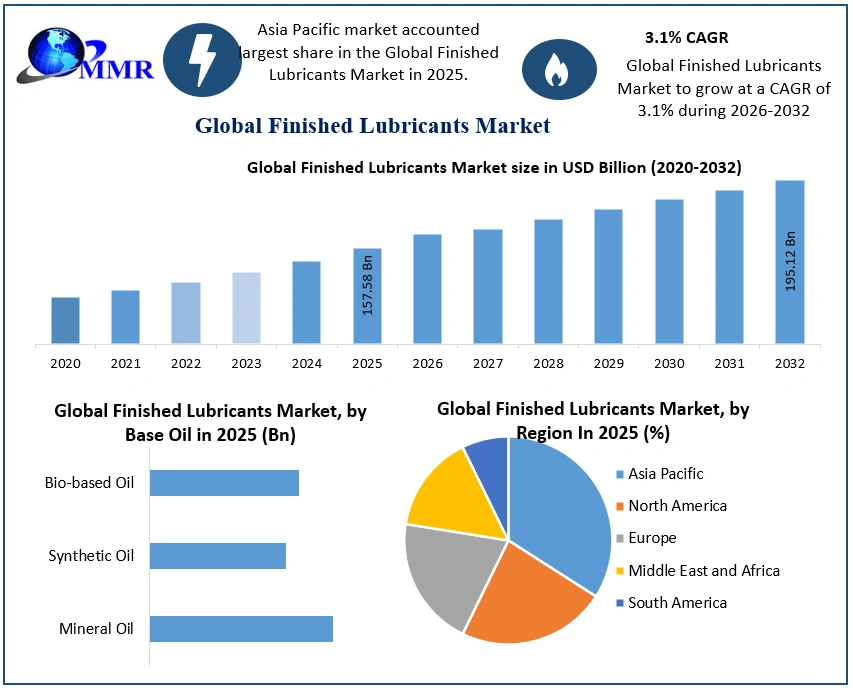 The Finished Lubricants Market size was valued at USD 157.58 Billion in 2025 and the total Finished Lubricants revenue is expected to grow at a CAGR of 3.1% from 2026 to 2032, reaching nearly USD 195.12 Billion by 2032.