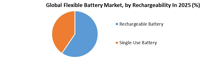 Based On Type, The Thin-Film Battery segment dominated the type segment of the Flexible Battery Market in the year 2025. The Thin-Film Battery segment has emerged as the dominant type in the Flexible Battery industry due to several key factors. The thin-film batteries offer distinct advantages such as flexibility, lightweight, and compactness, making them highly suitable for powering various flexible electronic devices such as wearables, IoT devices, and medical implants. Their thin profile allows seamless integration into slim and bendable designs, addressing the increasing demand for flexible and conformable power sources. Also, advancements in thin-film battery technology have led to improvements in energy density, longevity, and charging capabilities, further enhancing their appeal in the market. As a result, manufacturers and consumers alike are increasingly opting for thin-film batteries to power their flexible electronics, thus driving the dominance of this segment within the Flexible Battery Market.Based On Rechargeability, the Rechargeable Battery segment dominated the Rechargeability segment of the Flexible Battery Market in the year 2025. The Rechargeable Batteries are the backbone of numerous devices, from wearable tech to IoT gadgets, offering the convenience of multiple uses without compromising performance. Their prominence signifies the enduring impact of innovation and sustainability within the Flexible Battery Market, similar to the resilience and evolution of a dynamic urban landscape. The widespread adoption of rechargeable batteries in countless devices, including smartphones, smartwatches, and medical implants, has contributed to their market dominance. This trend is expected to persist as the demand for portable and wearable electronics continues to rise, driving further innovation in rechargeable battery technology. This Factor Significantly boosts The Flexible Battery Market Growth.