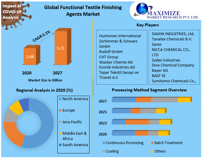 A textile functional finishing agent consists of epoxy polyether lateral chains and a water-soluble polysiloxane with polyether, incorporated with organic properties, mainly antimicrobial & anti-inflammatory substances, catalysts, and cross-linking agents.To know about the Research Methodology :- Request Free Sample Report The demand for traditional textile products from natural as well as synthetic fibers, like cotton, wool, silk, and polyester is less for aesthetic, comfort, and protective purposes in the end-use industries. Functional fabrics that possess antibacterial, anti-wrinkle, antistatic, water repellency, and other special properties, which are increasing their popularity in the textile industry.