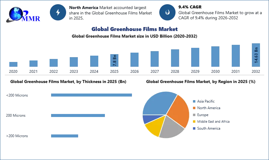 Greenhouse Films Market is expected to grow at a CAGR of 9.4% during the forecast period. Global Greenhouse Films Market is expected to reach USD 14.63 Bn by 2032.