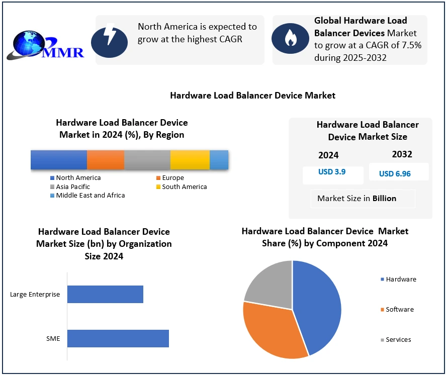 A hardware load balancer is a network device that efficiently distributes incoming traffic across multiple servers to ensure applications run smoothly, reliably, and without interruptions. It helps organizations maintain high performance, reduce downtime, and optimize resource usage, making it essential for sectors like banking, healthcare, e-commerce, telecom, and cloud computing, where uninterrupted services and low latency are crucial.To know about the Research Methodology:- Request Free Sample Report The global hardware load balancer market has been expanding steadily due to the growing need for secure, scalable, and high-performing network infrastructure. Increasing internet traffic, data-intensive applications, and cloud adoption are driving organizations to implement robust traffic management solutions. Modern devices provide advanced features, including application-aware traffic routing, SSL offloading, integrated security, and real-time analytics. These functionalities allow companies to improve application performance, minimize maintenance-related downtime, and manage IT resources efficiently. Regionally, North America led the hardware load balancer devices market, fuelled by large-scale enterprise IT modernization, strong cloud adoption, and increasing focus on cybersecurity. Europe is the second-largest market, driven by regulatory compliance requirements such as GDPR and rising concerns about data privacy and trusted IT infrastructure. Meanwhile, the Asia-Pacific region is emerging as the fastest-growing market. Rapid digitalization, adoption of 5G, and growth in e-commerce and fintech services in countries like China, India, and Japan are boosting demand for high-performance load balancers. Leading companies in the market include F5 Networks, A10 Networks, and Citrix Systems, which continue to innovate with devices that combine reliability, security, and intelligent traffic management. Overall, the hardware load balancer market is poised for strong growth, supported by ongoing digital transformation and the increasing demand for uninterrupted, efficient, and secure application delivery.