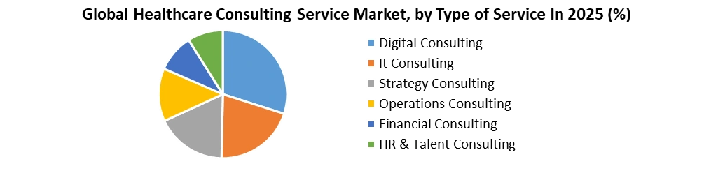 The healthcare consulting services market faces a complex web of interrelated challenges: rising project costs and hidden fees have strained budgets, particularly among smaller hospitals, often hampering ROI expectations; navigating evolving and stringent regulatory requirements (e.g., HIPAA, GDPR, FDA) consumes significant time and resources, increasing compliance risks; deep resistance to organizational change and cultural inertia can stall the implementation of digital systems like EHRs and AI-driven tools; data-security and patient-privacy concerns further complicate digital integration as consultants must ensure robust governance and confidentiality measures; and entrenched competition, alongside a scarcity of domain-specific talent, squeezes margins and limits service scalability.Global Healthcare Consulting Service Market Segment Analysis