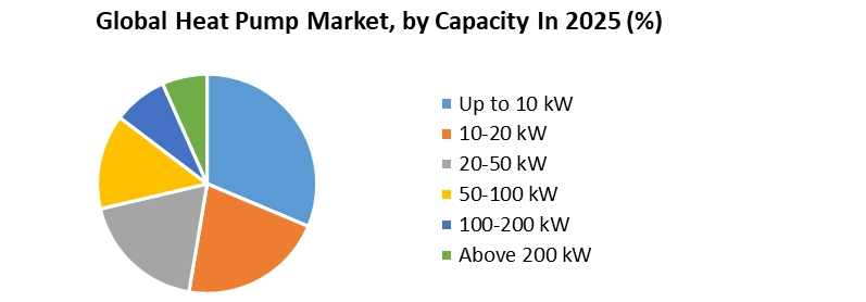 Based on Capacity, the heat pump market is segmented into Up to 10 kW, 10–20 kW, 20–50 kW, 50–100 kW, 100–200 kW, and Above 200 kW. The Up to 10 kW segment dominated the market in 2025, owing to its extensive use in residential buildings and small commercial spaces. Globally, more than 18 million small-capacity heat pumps were sold in 2025, supported by rising installations in apartments, single-family homes, and small offices. The 10–20 kW segment is growing rapidly due to increased adoption in mid-sized residential complexes and light commercial buildings, representing approximately 25% of total heat pump installations. Larger capacities such as 50–100 kW and 100–200 kW are gaining demand in commercial facilities, district heating networks, hotels, hospitals, and educational institutions, particularly in Europe and East Asia. Systems Above 200 kW, though niche, are witnessing strong momentum in industrial process heat, warehouses, food-processing units, and commercial complexes, where heat pumps are increasingly replacing conventional boilers. This trend is reinforced by the push for industrial electrification, rising energy costs, and growing preference for high-temperature heat pumps (90°C–160°C) in manufacturing environments.
