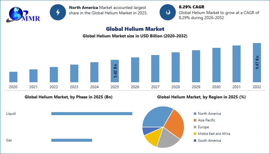 The Helium Market size was valued at USD 5.42 Billion in 2025 and the total Helium revenue is expected to grow at a CAGR of 8.29% from 2026 to 2032, reaching nearly USD 9.47 Billion.
