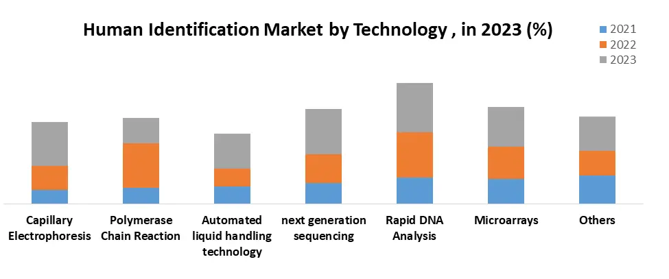 Rising Rates in Crimes driving the Human Identification Market Rising crime rates are a significant driver for the human identification market. Law enforcement requires stronger investigative tools to combat the increasing rate of crimes. Human identification products like DNA analysis kits, fingerprinting equipment, and forensic databases become essential for solving crimes and identifying suspects and victims. 1. In October 2021, the Indian Government launched three fast-track DNA testing units in Mumbai, Nagpur, and Pune under the Nirbhaya scheme for women and child sexual abuse cases. The growing number of crimes in global government initiatives is expected to drive the human identification market growth. The increased demand for forensics, particularly in accurate identification, has driven significant government initiatives. As crime rates increase, authorities are investing more resources and funding into forensic programs and laboratories. This surge in investment is driving the development of innovative DNA analysis tools and technologies, leading to growth in the human identification market. Governments recognize the critical role of precise identification methods in solving crimes effectively. Therefore, there's a growing prominence on enhancing the accuracy and efficiency of forensic processes. The trend highlights the importance of staying ahead in forensic science to address evolving criminal tactics. Collaboration between government programs and advancements in forensic technology is crucial for addressing the needs of contemporary law enforcement and legal systems. The increasing number of criminal cases has led to a rise in the number of unsolved cases aids in the urgency to adopt novel forensic technologies to solve pending cases.Human Identification Market Restraints: High Cost of Equipment and lack of skilled professionals DNA sequencers and other specific equipment needed for human identification processes are very expensive to acquire, maintain, and operate. DNA sequencers themselves cost hundreds of thousands of dollars, and there's the cost of supporting equipment, consumables, and lab space. Keeping these machines running smoothly requires constant maintenance and specialized technicians. The cost of repairs and replacement parts also be significant. It is a major barrier for smaller laboratories and organizations, particularly in developing countries. The analysis of DNA samples requires a high level of expertise. There is a global shortage of qualified forensic scientists and DNA analysts, which results in slower sample processing and hampers the adoption of new technologies. Human Identification Market Opportunity: Increasing investments and funding for forensic research Increasing investment and funding for forensic research present a significant opportunity for the growth of the market. These investments enable technological advancements, enhance forensic capabilities, and drive innovation, driving growth within the market. As research yields new methodologies and tools, it opens doors for wider applications and adoption in various sectors, fueling market growth. For instance, In 2022, the NIJ funded the National Policing Institute (NPI) for the Law Enforcement Advancing Data and Science (LEADS) Scholars Program, which supports the development of research-minded law enforcement professionals and for forensic research, including studies on terrorism, human trafficking, gang violence, and mass murders.