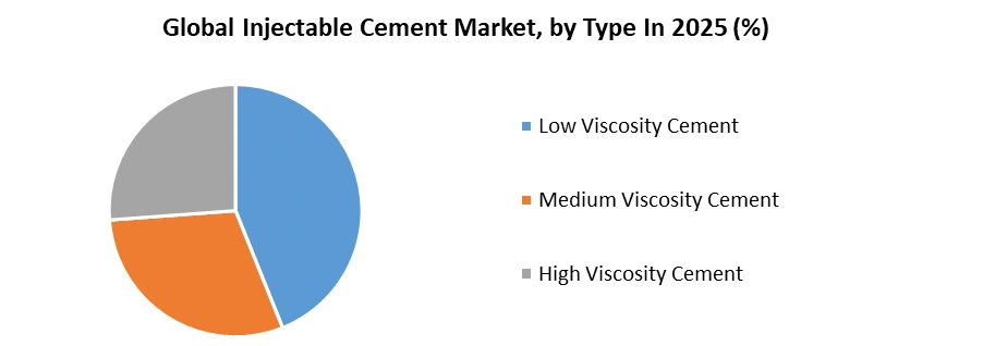 Based on Type Based on type injectable cement market is segmented into low viscosity cement, Medium Viscosity Cement and High Viscosity Cement.Low viscosity cement remains runny for a long period and long waiting phase which makes them settle in a longer time.Medium viscosity cement is both low and high in viscosity depending on the time in which the cement is delivered.High viscosity cement has high viscosity which makes them doughy and ready to use immediately after mixing.Based on the Application Based on application injectable cement market is segmented into Periprosthetic fractures, Pelvic Fractures and Others Periprosthetic fractures are considered fractures associated with an orthopedic implant, whether a replacement or internal fixation device. The global incidence of all types of PF is increasing constantly due to the growing number of primary joint arthroplasties and revision surgeries. A pelvic fracture is a break in one or more of your bones in your pelvis. Pelvic fractures are an uncommon type of fracture that can range from mild to severe. While mild pelvic fractures usually don't require surgery, severe fractures have to be fixed with surgery.