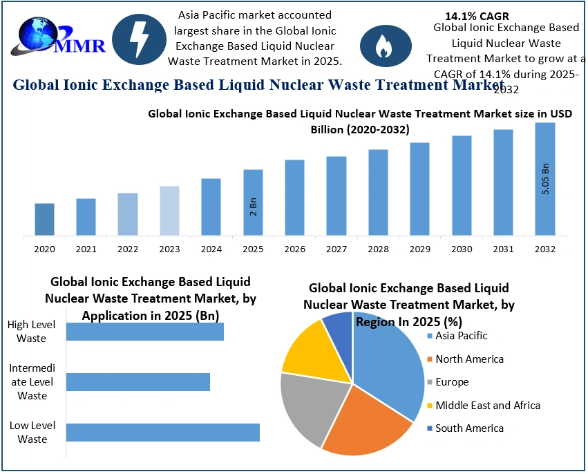 Global Ionic Exchange Based Liquid Nuclear Waste Treatment Market Report Coverage Details Base Year: 2025 Forecast Period: 2026-2032 Historical Data: 2020 to 2025 Market Size in 2025: USD 2 Bn. Forecast Period 2026 to 2032 CAGR: 14.1% Market Size in 2032: USD 5.05 Bn. Segments Covered: by Type Inorganic Natural Ion Exchangers Thermal Organic Natural Ion Exchangers Synthetic Inorganic Ion Exchangers Modified Natural Ion Exchangers Synthetic Organic Ion Exchangers by Application Low Level Waste Intermediate Level Waste High Level Waste Ionic Exchange Based Liquid Nuclear Waste Treatment Market, by Region