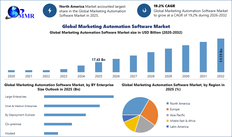 Global Marketing Automation Software Market was valued US$ 17.43 Bn in 2025 and is expected to grow US$ 59.59 Bn by 2032, at a CAGR of 19.2% during the forecast period.