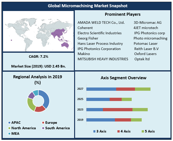 • North America (United States, Canada and Mexico) • Europe (UK, France, Germany, Italy, Spain, Sweden, Austria and Rest of Europe) • Asia Pacific (China, South Korea, Japan, India, Australia, Indonesia, Malaysia, Vietnam, Taiwan, Bangladesh, Pakistan and Rest of APAC) • Middle East and Africa (South Africa, GCC, Egypt, Nigeria and Rest of ME&A) • South America (Brazil, Argentina Rest of South America)Micromachining Market key player: