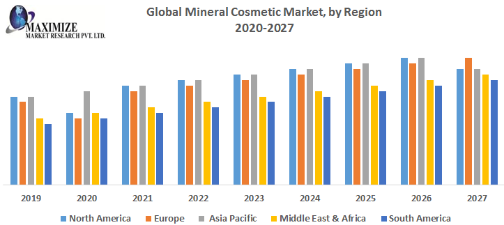 Mineral cosmetic market is continuously increasing in the global scenario at a significant pace. Mineral cosmetic is a type of makeup made of natural minerals like iron oxides, zinc oxide, mica powder, titanium dioxide, and organic oils. Mineral cosmetic is not derived from plant sources and does not comprise any oil or wax additives. Increasing demand for cosmetics from both the male and female population, surging focus on organic cosmetic products and escalating disposable income of the individuals are the substantial driving factors of the market throughout the forecast period. Additionally, changing consumer taste & preference are the factors expected to create many opportunities in the near future. Also, mineral cosmetics proposals various benefits such as it helps to keep complexion clear, it can use after the facial treatment, it prevents skin irritation, and so on. These benefits are also boosting the demand for mineral cosmetics among its users across the globe. However, a threat from substitute and the high price of products are the factors that restrict the market growth of mineral cosmetic during the forecast period. Based on application, facial makeup segment is leading the mineral cosmetic market globally. There is a growing demand for cosmetics that address multiple skin and hair concerns within a minimal time span. So, players are focusing on expanding their existing product lines by introducing new premium cosmetics as per consumer requirements. On the basis of product, the organic product segment is dominating the global mineral cosmetic market. Rising focus on organic cosmetic products and escalating disposable income of the individuals are the significant driving factors of the market during the forecast period.Mineral Cosmetic Market Regional Analysis: