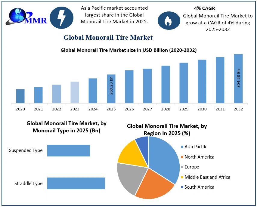 The Monorail Tire Market size was valued at USD 269.23 Billion in 2025 and the total Monorail Tire revenue is expected to grow at a CAGR of 4% from 2025 to 2032, reaching nearly USD 354.28 Billion by 2032.Global Monorail Tire Market: Overview