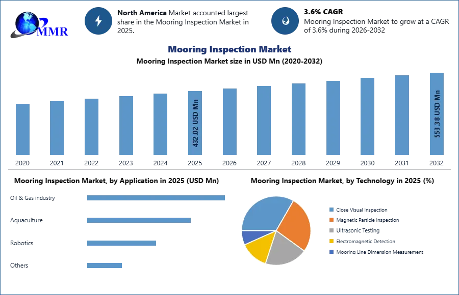 Global Mooring Inspection Market was valued USD 432.02 Mn. in 2025 and is expected to reach USD 553.38 Mn. by 2032.