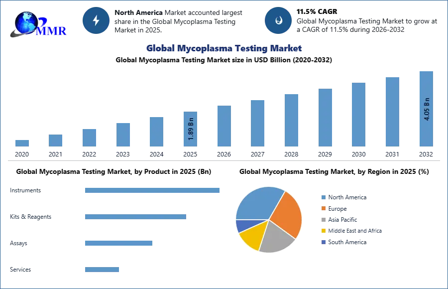 Mycoplasma Testing Market size is expected to reach nearly USD 4.05 Bn by 2032 with the CAGR of 11.5% during the forecast period.