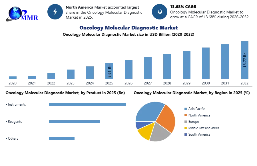 Oncology Molecular Diagnostic Market was valued at US$ 5.61 Bn in 2025, and it is expected to reach USD 13.77 Bn by 2032, exhibiting a CAGR of 13.68% during the forecast period 2025-2032.