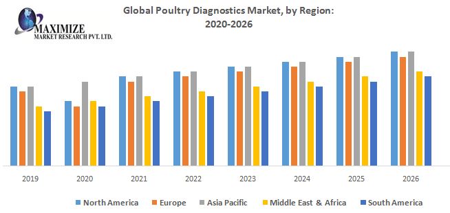 The huge livestock population in the Asia-Pacific region, rising demand for poultry-derived food products, growing alertness about animal health, and increasing per capita animal health expenditure, especially in India and China are estimated to witness the highest growth rate in the Asia-Pacific region during the forecast period. North American poultry diagnostics market is showing lucrative growth owing to growth in the demand for healthy meat & innovation of newer tests. The Middle East & Africa is growing rapidly owing to an increase in the occurrence of infectious diseases, growth in per capita income, and awareness about poultry diseases among key stakeholders are driving the market growth in this region. The report covers a comprehensive study of major market drivers, restraints, opportunities, challenges, PESTEL, Porters, SWOT, and technological forecasting in the market.Poultry Diagnostics Market, Key Highlights: