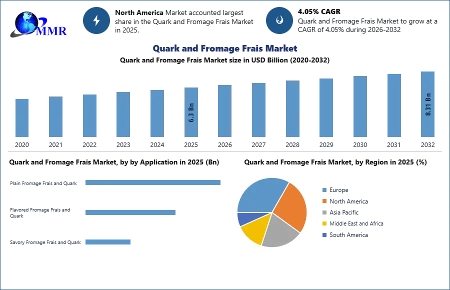 Global Quark and Fromage Frais Market size was valued at US$ 6.3 Bn. in 2025 and the total revenue is expected to grow at 4.05% through 2026 to 2032, reaching nearly US$ 8.31 Bn.