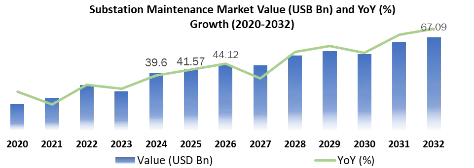The Substation Maintenance Market size was valued at USD 41.57 Billion in 2025, and the market value is expected to reach nearly USD 67.09 Billion by 2032.Substation Maintenance Market Overview: