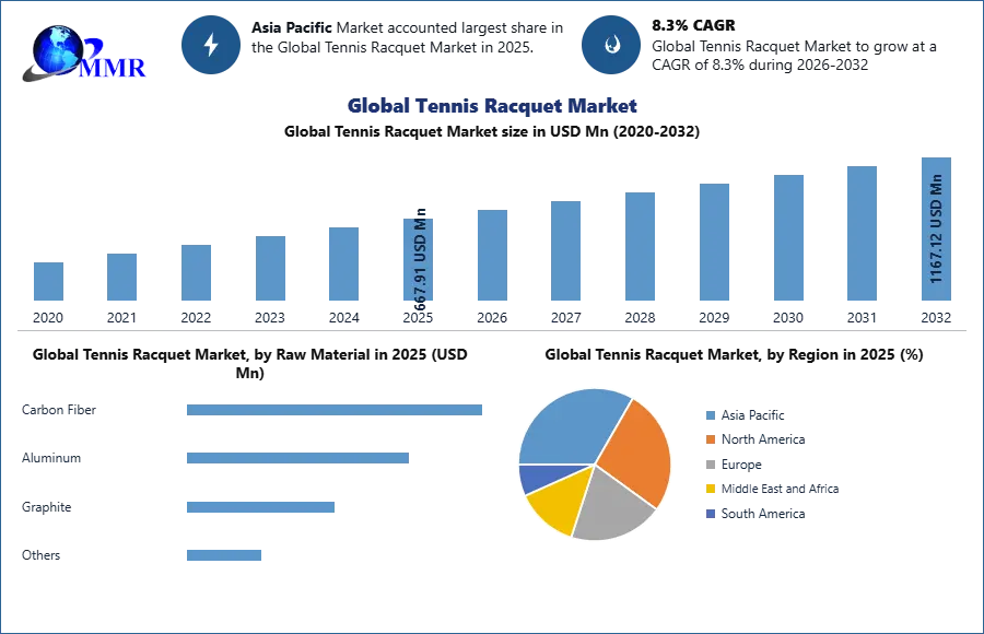 Tennis Racquet Market Size by Raw Material, String Pattern, Distribution Channel, and Region – Segment-Level Market Assessment, Growth Opportunity Analysis, Competitive Mapping & Forecast to 2032