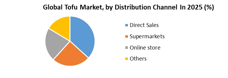 By Product, Processed tofu is dominating segment in the global tofu market with 86% of the market share. Processed Tofu is made for longer shelf life with certain preservatives and to reduce spoilage. Generally, the food and beverage industry prefers processed tofu due to its easy availability and longer food life and reduce uncertain spoilage. Domestic usage of processed tofu is fairly large for the dame reason and affordability. Unprocessed tofu made of organic soy and unfertilized process which is a costlier option and relatively less demand due to tendency of early wastage.By Application, Food and beverage industry is the dominating segment in Global Tofu Market by holding a 68% market share in 2025. A variety of dishes and preparations in restaurants and traditional cuisine creates high demand in the food and beverage industry. East Asia, Japan, and the Korean region have the highest application of tofu in their traditional dishes and in specialty restaurants where tofu is prepared with peanut, azuki beans with oatmeal, and mung beans. Domestic consumption of tofu is fairly less compared to the F&B industry. Organic tofu is preferred in domestic consumption due to the naturally made unfertilized process. By Distribution Channels, the Supermarkets segment is dominating segment in Global Tofu Market. A robust supply chain, a variety of options under one roof, and a constant supply of stock made the supermarkets a favorable option for the consumer to source soy-based products like tofu. 65% of tofu sales generated from Supermarkets and hypermarkets as higher demand for processed tofu with longer shelf life and variety made to available to customers have created an impact on another form of distribution channels like direct sales. Currently, online sourcing of tofu and the soy-based product has seen major growth and is likely to pick up the trend in all urbanized cities.