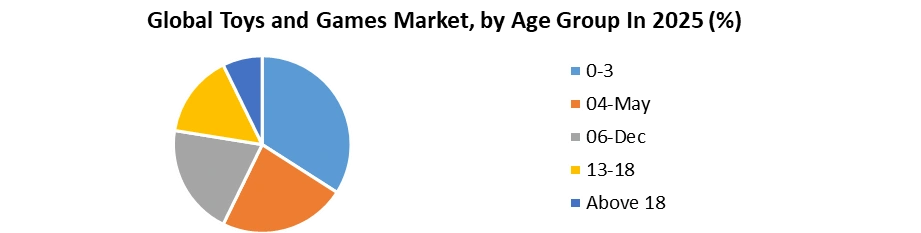 Based on Age Group, the market is segmented into 0-2, 3-5, 6-12, 13-18, and Above 18. 6-12 age group segment dominated the market in 2025 and is expected to hold the largest Toys and Games Market share over the forecast period. Children aged 6-12 experience significant cognitive, social, and emotional development. They are refining their fine and gross motor skills, expanding their language abilities, and developing problem-solving and critical thinking skills. Toys and games designed for this age group often align with developmental milestones, providing opportunities for learning, creativity, and social interaction. Parents play a significant role in selecting toys and games for children aged 6-12, considering factors such as educational value, safety, and developmental appropriateness. They also encourage a balance between screen time and hands-on play experiences.