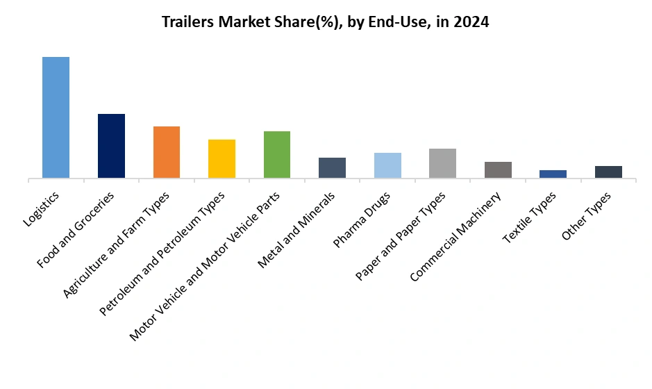 Based on Type, The Enclosed Trailers segment is expected to grow at the highest CAGR during the forecast period. Purchasing an enclosed trailer has several advantages. The three that are most frequently used are storage, protection, and security. Enclosed trailers give you the most storage space possible by having side walls where shelving is puted and a roof from which equipment hang. The fully covered style also shields your belongings from the elements and burglary. Your equipment is shielded from potentially damaging factors such as rain, snow, sun, dirt, and more by enclosed trailers. They additionally offer a higher level of security at the same time. When you lock the doors to your trailer, it makes it very difficult for someone to steal anything from within. Comparatively speaking to other open trailer types, enclosed trailers offer a lot more safety and security.Based on End-Use, The Logistics is expected to grow at the highest CAGR during the forecast period. Owing to its superior cost benefits over other modes, road transportation is the most popular mode in the logistics industry. Thus, one of the main end markets for vehicle trailers is logistics. In addition, the demand for logistics and supply chain services is rising owing to the quick development of the industrial, agricultural, electronics, textile, and garment industries. The majority of businesses rely on third-party logistics Types to reduce fleet investments, staff reductions, and to ensure that different kinds of containers, tanks, and flatbeds are available as needed. Additionally, owing to the huge growth of e-commerce operations, e-commerce enterprises are more dependent on logistics service Types to assure the transit of goods through warehouse and distribution hub. Owing to the adaptability afforded in terms of load-carrying capacity, logistics organisations, particularly less than truckload (LTL) and full truckload (FTL) freight shipping companies, are increasingly embracing automotive trailers. Additionally, compared to rigid trucks, trailers have the lowest cost of transportation per tonne per km, which is boosting their use in logistical operations.