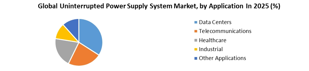 Based on Type, The Online UPS System segment dominated the market in the year 2025 and is expected to dominate during the forecast period. Operates by consistently supplying power from its inverter to connected equipment. This involves the conversion of incoming AC power to DC and subsequently back to AC power. This continuous conversion process ensures an unbroken power supply, safeguarding the load against a wide range of power anomalies such as fluctuations, surges, sags, and complete outages. Notably, the system maintains a seamless transition between utility power and battery power, with the battery acting as a buffer to ensure uninterrupted power flow. The commanding presence of Online UPS Systems within the market is attributed to their unparalleled ability to offer steadfast power protection. The system's capability to ensure an unceasing and clean power supply positions it as the preferred choice for scenarios demanding unwavering reliability and continuous power, despite the potential challenges posed by external factors. Although initial costs may be relatively higher, the assurance of a consistent power supply and the safeguarding of valuable equipment underscores the pivotal role of Online UPS Systems, particularly in critical industries and applications.Based on the Capacity, the range of 10-100 kVA segment dominated the market in the year 2025 and is expected to continue its dominance during the forecast period. The segment emerges as the prevailing and influential segment, offering a versatile and well-suited solution to a wide array of industry requirements. In essence, the dominance of the 10-100 kVA capacity segment is rooted in its adaptability, scalability, cost-effectiveness, and capacity to harmonize with the diverse power protection requisites of various sectors. Striking a harmonious balance between substantial power backup and industry-specific operational intricacies positions this range as a favored and frequently opted solution within the expansive domain of the Uninterrupted Power Supply System Market. Based on the Application, the Data Centers segment dominated the market in the year 2025 and is expected to continue its dominance during the forecast period. Emerges as the preeminent and pivotal domain, substantiated by the indispensable requirement for continuous and unfaltering power supply in today's digitally oriented milieu. In the contemporary landscape, data constitutes the lifeblood of enterprises and institutions. Data centers serve as the epicenters for the storage, processing, and dissemination of vital information. Uninterrupted power is not just a necessity but an irreplaceable prerequisite to ensure seamless operations and the safeguarding of invaluable data assets. Data centers operate within an ecosystem where even the most fleeting power disruption can culminate in substantial financial losses, data integrity compromise, and compromised service delivery. The Data Center segment within the Uninterrupted Power Supply System Market stands as a formidable defense mechanism against these potentially ruinous outcomes by furnishing a robust power backup solution.